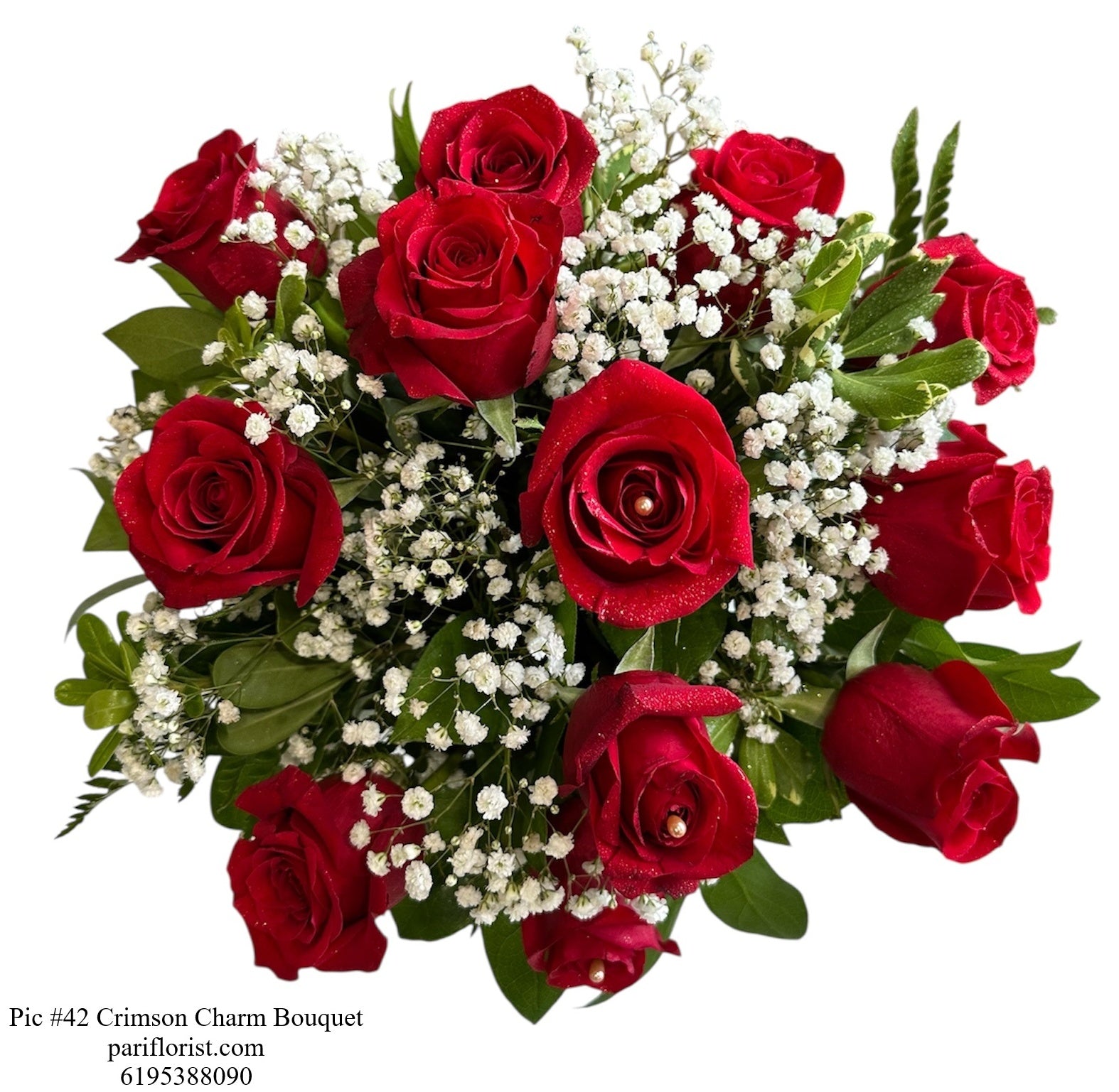 This romantic arrangement features a collection of radiant red roses paired with delicate baby’s breath for a timeless look. Designed with lush greenery, it exudes elegance and passion, making it perfect for anniversaries, Valentine’s Day, or any moment when you want to express heartfelt love. Classic yet full of charm, this bouquet is a striking display of devotion.